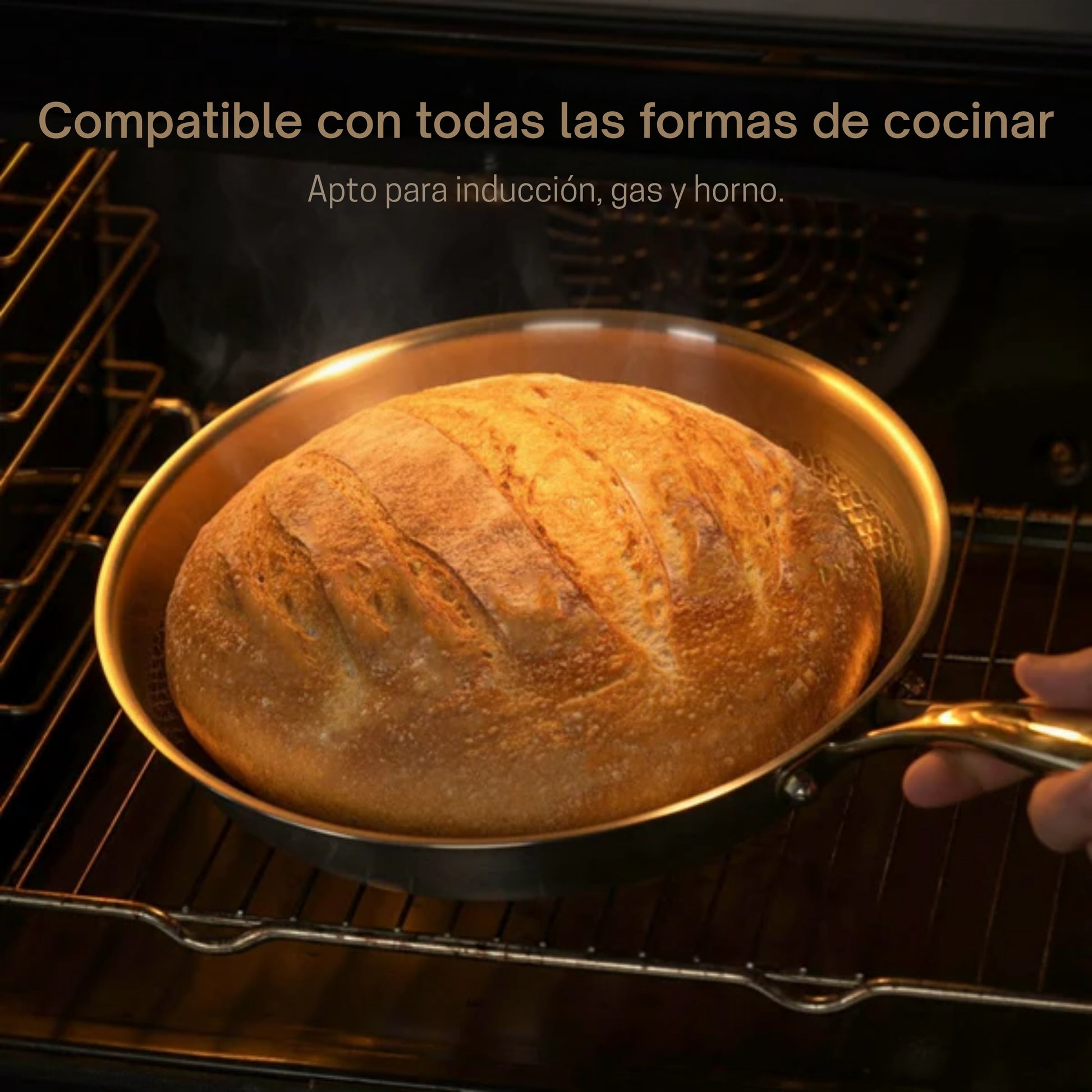 A diferencia de otras sartenes con revestimientos de titanio unidos con productos químicos tóxicos , nuestra sartén está fabricada con una sólida capa de titanio puro, libre de químicos dañinos y diseñada para durar. Esto garantiza máxima durabilidad y una excelente retención de nutrientes.