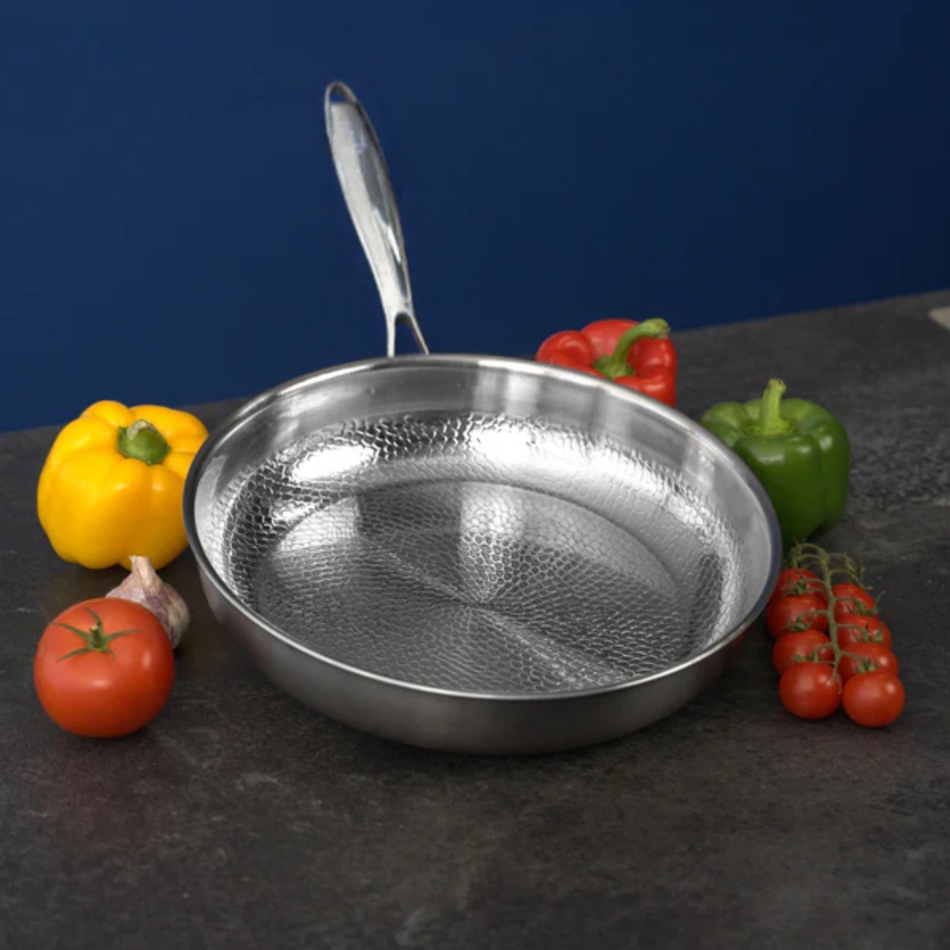 Gracias a su diseño de 3 capas, la sartén TitaniumFlame se calienta muy rápido y distribuye el calor uniformemente, así que nunca tendrás que esperar mucho para que alcance la temperatura perfecta. Disfruta de una cocción más rápida y eficiente en cada ocasión.